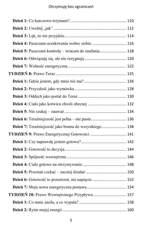 Ten dziennik to nie tylko narzędzie rozwoju – to Twoja osobista świątynia transformacji. Przez 11 tygodni, dzień po dniu, będziesz otwierać się na energię otrzymywania, uczyć się manifestować z poziomu ciała i serca, a nie tylko z głowy. To proces oparty na 11 uniwersalnych Prawach Otrzymywania, które poprowadzą Cię od ograniczających przekonań do pełni kobiecej mocy, lekkości i wewnętrznej przestrzeni.